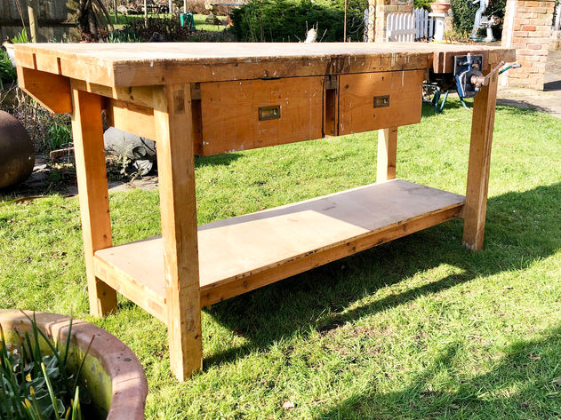 Mid Century Solid Pine Carpenters' Work Bench